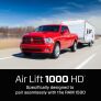 The Air Lift 1000 HD from Air Lift is a heavy-duty version of the air suspension specialist's debut product, the Air Lift 1000 system. After over 75 years, the staple product has been upgraded to offer up to 2,500 lbs. of load-leveling capabilities. Specifically designed for drivers of RAM 1500 pickups, these custom-molded polyurethane air springs are simply inserted in the rear coil springs, no vehicle modifications required. Working with the vehicle's existing suspension, Air Lift 1000 HD does away with many of the problems frequently faced when towing or hauling heavy loads, including squat, poor headlight aim, unresponsive steering, trailer sway, body roll, and bottoming out. By properly leveling the load, squat is eliminated, braking is improved, and the vehicle is returned to a level and stable state, allowing users to tow and haul with safety and comfort. Installing the kit is a simple process, requiring only common hand tools and no frame drilling. The Air Lift 1000 HD kit comes with a clear, easy-to-follow installation manual for you to use as you add air bags to the existing suspension. As the leader in air suspension products for more than 70 years, Air Lift is committed to delivering quality load support parts that last. The key suspension components have all been torture-tested to ensure the highest quality, longevity, and customer satisfaction. With a limited-lifetime warranty, you can purchase this kit with peace of mind. Take your existing air suspension solution to the next level of safety and comfort with the Air Lift 1000 HD today!
