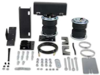 LoadLifter 5000 ULTIMATE adjustable air spring kits feature all of the benefits of our heaviest rated air spring with the addition of an internal jounce bumper inside the spring for the ultimate in ride comfort. An Air Lift exclusive product! Fits vehicles with in-bed hitches. Tow and haul the heaviest loads with safety and comfort with LoadLifter 5000 ULTIMATE. Works with vehicle's leaf springs to provide up to 5,000 lbs. of front load leveling capacity and keeps the vehicle riding stable, level and comfortable whether loaded or unloaded. Fully adjustable from 5 to 100 PSI. The closed-cell urethane foam jounce bumper inside the ULTIMATE air springs provide a cushion of air that absorbs shock, eliminates harsh jarring on rough roads and protects vehicles carrying heavy loads. Never bottom out again with the ULTIMATE! LoadLifter 5000 ULTIMATE air springs are maintenance free! Safely run with zero air pressure because of the internal jounce bumper. Replaces factory jounce bumper that is sometimes removed when adding air springs. Includes industry-exclusive 60 Day No Questions Money Back Guarantee! Includes the most comprehensive Lifetime Warranty in the industry---covers all kit contents including brackets, fittings and air line. Air springs are built like a tire and are reinforced by durable, 2-ply fabric for maximum strength. Exclusive upper and lower roll plates included. Protect the springs from sharp edges, such as brackets or the frame. The kit includes 2 air springs, brackets, air lines, Schrader valve and all of the hardware needed for installation. Includes fully illustrated instruction manual. Add an Air Lift on-board air compressor system to inflate and deflate air springs with the touch of a button from inside or outside of the vehicle.