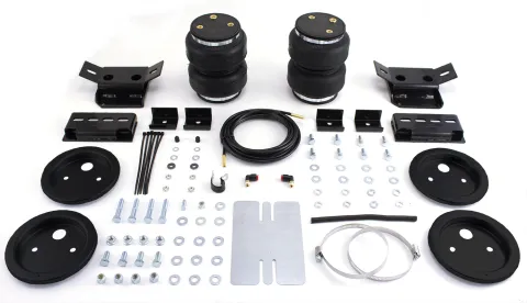 LoadLifter 5000 ULTIMATE adjustable air spring kits feature all of the benefits of our heaviest rated air spring with the addition of an internal jounce bumper inside the spring for the ultimate in ride comfort. An Air Lift exclusive product! Fits vehicles with in-bed hitches. Tow and haul the heaviest loads with safety and comfort with LoadLifter 5000 ULTIMATE. Works with vehicle's leaf springs to provide up to 5,000 lbs. of front load leveling capacity and keeps the vehicle riding stable, level and comfortable whether loaded or unloaded. Fully adjustable from 5 to 100 PSI. The closed-cell urethane foam jounce bumper inside the ULTIMATE air springs provide a cushion of air that absorbs shock, eliminates harsh jarring on rough roads and protects vehicles carrying heavy loads. Never bottom out again with the ULTIMATE! LoadLifter 5000 ULTIMATE air springs are maintenance free! Safely run with zero air pressure because of the internal jounce bumper. Replaces factory jounce bumper that is sometimes removed when adding air springs. Includes industry-exclusive 60 Day No Questions Money Back Guarantee! Includes the most comprehensive Lifetime Warranty in the industry---covers all kit contents including brackets, fittings and air line. Air springs are built like a tire and are reinforced by durable, 2-ply fabric for maximum strength. Exclusive upper and lower roll plates included. Protect the springs from sharp edges, such as brackets or the frame. The kit includes 2 air springs, brackets, air lines, Schrader valve and all of the hardware needed for installation. Includes fully illustrated instruction manual. Add an Air Lift on-board air compressor system to inflate and deflate air springs with the touch of a button from inside or outside of the vehicle.