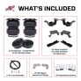 • Adjustable air springs from 5-100 PSI, with up to 5,000 lbs. of leveling capacity