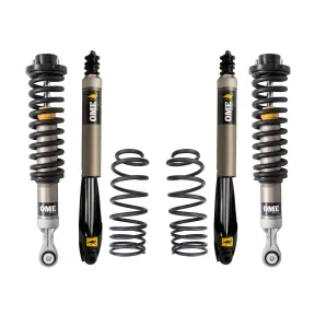 Old Man Emu offers a range of tuned and matched integrated suspension kits to ensure the right suspension is selected for how the vehicle is outfitted and the conditions it will encounter. Old Man Emu suspension systems are designed to enhance ride quality, ride control, load-carrying capacity, and ride height. When building an off-road vehicle, it's best to notate the heavy parts that you plan to add. Heavy components will slowly begin to compress your suspension which results in vehicle sag. Choosing an Old Man Emu integrated suspension kit will avoid sag and ride discomfort as our engineers have tuned and matched suspension components for an range of different weights. Old Man Emu has an offering of 3 different shock absorbers to ensure that you can find an integrated suspension kit to suit your every demand, vehicle outfit and road condition. This suspension lift kit comes with Old Man Emu MT64 shocks. The MT64 is engineered to handle every challenge, from demanding overlanding trips to the daily commute and every custom build in between, the MT64's huge 2.8 aluminum body and vehicle-specific damping ensure optimal performance across any terrain. This suspension lift kit is tuned and matched for the Toyota Tacoma to provide 3in of lift in the front, with an weight of 0lbs and provide 2in of lift in the rear with an weight of 440lbs