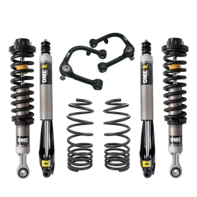 Old Man Emu offers a range of tuned and matched integrated suspension kits to ensure the right suspension is selected for how the vehicle is outfitted and the conditions it will encounter. Old Man Emu suspension systems are designed to enhance ride quality, ride control, load-carrying capacity, and ride height. When building an off-road vehicle, it's best to notate the heavy parts that you plan to add. Heavy components will slowly begin to compress your suspension which results in vehicle sag. Choosing an Old Man Emu integrated suspension kit will avoid sag and ride discomfort as our engineers have tuned and matched suspension components for an range of different weights. This suspension lift kit comes with Old Man Emu MT64 shocks. The MT64 shocks are engineered to handle every challenge, from demanding overlanding trips to the daily commute and every custom build in between, the MT64's huge 2.8in aluminum body and vehicle-specific damping ensure optimal performance across any terrain. This suspension lift kit is tuned and matched for the Toyota 4Runner to provide 3in of lift in the front, with a weight of 0lb and provide 2in of lift in the rear with a weight of 0lb, this kit includes upgraded upper control arms.