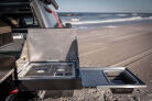 Whether at the campsite, the local park, the work site, or even the side of the road, enjoy the ease of a fully-functioning kitchen, wherever you and your vehicle are headed. Featuring a two-burner propane powered stove, sink, storage drawer, and ample bench space, ARB’s fully freestanding Slide Kitchen can be set up in as little as 15 seconds. Beyond being one of the most practical features for any overland setup, the Slide Kitchen boasts an innovative user-friendly design and can be installed as a stand alone unit, or fully integrated into ARB's modular drawer systems.