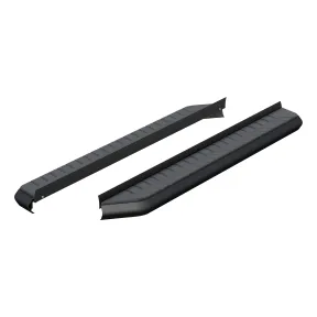 For some, it's more than just a drive. It's about definition -- finding the rush that comes with your hands on the wheel and your foot on the gas -- and it starts by stepping into your vehicle with confidence. ARIES AeroTread running boards give new definition to your drive with their sleek design, full-length treads and flawless finish. They feature unencumbered aluminum construction and a custom contour to redefine your look and offer a solid step up. Made specifically for today's crossover and SUV, ARIES AeroTread running boards are marked for their aerodynamic look and lightweight build. They are constructed from an extruded aluminum base, making them strong and impervious to the elements. Each set of running boards features sleek, curved edges with tapered ends to seamlessly blend with the body of your vehicle. To give you the exact, customized look you want, AeroTread running boards come with one of two front-trim finish options: polished stainless steel or black carbide powder-coated stainless steel. They are also equipped with a 5" wide, hard plastic step pad that runs the entire length of the board, providing a non-skid surface no matter where you place your foot. AeroTread running boards install using a track mounting system to attach vehicle-specific brackets, and pre-existing holes in the vehicle's frame are used to eliminate drilling, speed up installation and ensure stable footing (NOTE: Mounting brackets are sold separately, see the application information to determine which brackets and boards fit your vehicle). The mounting brackets are made from steel and are coated in a powder coat finish for long-lasting dependability. Whatever road you choose, define your drive with ARIES AeroTread running boards.
