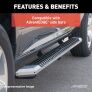 While many side accessories feature a universal track mounting system for easier installation and inventory requirements, the ARIES VersaTrac mounting system takes things a step further. VersaTrac uses a single set of vehicle-specific brackets to accommodate different side accessory options. This not only means different finish options but also different products entirely. With the brackets installed, any side bar or running board equipped with the VersaTrac mounting system can be attached or swapped out whenever desired. The VersaTrac mounting system saves you time and money. It eliminates the need to purchase and install an entirely new set of mounting brackets with each new side accessory. The mounting brackets are available for purchase as a stand-alone item or as part of a complete kit with compatible side bars and running boards. Use the application information to determine which part numbers will fit your vehicle.