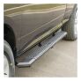 ARIES AdvantEDGE side bars do away with the common, rounded look of other side bars and nerf bars, featuring an angular, eight-sided tube profile and powder-coated all-aluminum construction. The angular edges provide a clear-cut, uncompromising accent for the look of today's trucks. Made from 5-1/2" wide, eight-sided, extruded aluminum tubing, AdvantEDGE side bars are strong, lightweight and impervious to rust, offering a solid step that is built to face the elements and outlast them. They also come with die-cast aluminum end caps and a stamped aluminum tread. The aluminum treads provide a long-lasting, non-skid stepping surface that will not crack or fade in the sun. ARIES AdvantEDGE side bars are also marked for their easy, custom-fit installation. They feature the ARIES VersaTrac mounting system with brackets that are made from powder-coated steel and built for specific vehicles (NOTE: VersaTrac mounting brackets are sold separately; see application information to determine which brackets and side bars fit your vehicle). The high-strength steel brackets mount using pre-existing holes, and the side bars attach to the brackets with heavy-duty hardware and a full-length channel. The VersaTrac mounting system makes installation simple and customizable, allowing the side bars to be swapped out at any time with other side steps or running boards that feature the VersaTrac system. Setting yourself apart is simple with the ARIES AdvantEDGE series. In addition to our AdvantEDGE side bars, we also offer the AdvantEDGE bull bar and AdvantEDGE headache rack, featuring the same all-aluminum construction and eight-sided tube profile. For a fully customized look to match your pickup, AdvantEDGE side bars are available in two finish options, including carbide black powder coat or chrome powder coat.