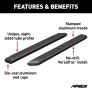 ARIES AdvantEDGE side bars do away with the common, rounded look of other side bars and nerf bars, featuring an angular, eight-sided tube profile and powder-coated all-aluminum construction. The angular edges provide a clear-cut, uncompromising accent for the look of today's trucks. Made from 5-1/2" wide, eight-sided, extruded aluminum tubing, AdvantEDGE side bars are strong, lightweight and impervious to rust, offering a solid step that is built to face the elements and outlast them. They also come with die-cast aluminum end caps and a stamped aluminum tread. The aluminum treads provide a long-lasting, non-skid stepping surface that will not crack or fade in the sun. ARIES AdvantEDGE side bars are also marked for their easy, custom-fit installation. They feature the ARIES VersaTrac mounting system with brackets that are made from powder-coated steel and built for specific vehicles (NOTE: VersaTrac mounting brackets are sold separately; see application information to determine which brackets and side bars fit your vehicle). The high-strength steel brackets mount using pre-existing holes, and the side bars attach to the brackets with heavy-duty hardware and a full-length channel. The VersaTrac mounting system makes installation simple and customizable, allowing the side bars to be swapped out at any time with other side steps or running boards that feature the VersaTrac system. Setting yourself apart is simple with the ARIES AdvantEDGE series. In addition to our AdvantEDGE side bars, we also offer the AdvantEDGE bull bar and AdvantEDGE headache rack, featuring the same all-aluminum construction and eight-sided tube profile. For a fully customized look to match your pickup, AdvantEDGE side bars are available in two finish options, including carbide black powder coat or chrome powder coat.