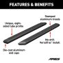 ARIES AdvantEDGE side bars do away with the common, rounded look of other side bars and nerf bars, featuring an angular, eight-sided tube profile and powder-coated all-aluminum construction. The angular edges provide a clear-cut, uncompromising accent for the look of today's trucks. Made from 5-1/2" wide, eight-sided, extruded aluminum tubing, AdvantEDGE side bars are strong, lightweight and impervious to rust, offering a solid step that is built to face the elements and outlast them. They also come with die-cast aluminum end caps and a stamped aluminum tread. The aluminum treads provide a long-lasting, non-skid stepping surface that will not crack or fade in the sun. ARIES AdvantEDGE side bars are also marked for their easy, custom-fit installation. They feature the ARIES VersaTrac mounting system with brackets that are made from powder-coated steel and built for specific vehicles (NOTE: VersaTrac mounting brackets are sold separately; see application information to determine which brackets and side bars fit your vehicle). The high-strength steel brackets mount using pre-existing holes, and the side bars attach to the brackets with heavy-duty hardware and a full-length channel. The VersaTrac mounting system makes installation simple and customizable, allowing the side bars to be swapped out at any time with other side steps or running boards that feature the VersaTrac system. Setting yourself apart is simple with the ARIES AdvantEDGE series. In addition to our AdvantEDGE side bars, we also offer the AdvantEDGE bull bar and AdvantEDGE headache rack, featuring the same all-aluminum construction and eight-sided tube profile. For a fully customized look to match your pickup, AdvantEDGE side bars are available in two finish options, including carbide black powder coat or chrome powder coat.