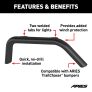 The ARIES TrailChaser Jeep bumper is unlike any other bumper for the Jeep Wrangler because it features a modular design. Each piece can be attached or swapped out as desired, giving you complete freedom of customization. This particular piece includes the front-end round center brush guard only and is intended to be mounted on the TrailChaser front bumper center section (sold separately). It features two welded tabs to mount an LED light bar or LED work lights and offers extra protection for the winch housing. This center brush guard is constructed from T6 aluminum alloy to be strong, lightweight and rust-free, and has a unique, textured black powder coat finish for maximum corrosion resistance. It is also available in powder-coated steel and in an angular design.