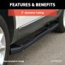 ARIES 3" round side bars are a reliable and budget-friendly option for side steps on your truck. This set of nerf bars offers solid rust resistance, a custom fit and a no-drill installation. Constructed from stainless steel, these 3" side bars are perfect for work or play, easily withstanding dirt, water, mud, sand, snow and road salt and maintaining dependable corrosion resistance even offroad. They also come with a durable semi-gloss black powder coat finish that greater enhances rust resistance, and helps keep the nerf bars looking clean in spite of minor scuffs and scratches. 3" diameter, heavy-wall tubing is used to construct the steps, providing excellent strength and rigidity for safe, comfortable entry and exit. These 3" round nerf bars also feature non-skid step pads to further enhance safety. The step pads are textured to increase traction, and they are custom-placed to match the door layout for a convenient step up right where you need it. To ensure the best fit and appearance on your truck, every set of 3" side bars is made vehicle-specific. This means the steps are bent to a specific contour to complement the shape of the vehicle's rocker panels. It also makes for a much easier installation compared to any universal nerf bars or running boards. These particular 3" nerf bars are designed to fit specific years of the Chevy Silverado 1500, 1500 Classic, 1500 HD Classic, 2500 HD, 2500 HD Classic, 3500 HD or 3500 Classic and GMC Sierra 1500, 1500 Classic, 1500 HD Classic, 2500 HD, 2500 HD Classic, 3500 HD or 3500 Classic (see application info to verify fitment). ARIES side bars use heavy-duty, vehicle-specific brackets that mount using pre-existing factory holes to completely eliminate drilling from the installation process. This speeds up the install and helps avoid unnecessary modification to your vehicle. It also promotes a stronger, more rigid step for sure footing every time you climb into your truck.