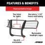 For the conqueror in every truck, Jeep or SUV owner, the ARIES grille guard offers the tough, trail-ready look you demand. It begins with a one-piece frame of 1/4" thick welded plates and 1-1/2" mandrel-bent tubing for a solid build. Each one is made with a vehicle-specific design for a better fit, easier install and more secure mounting. The side brush guards are custom-bent to contour to the profile of your vehicle, while the mounting brackets are positioned for a no-drill application. This means pre-existing factory holes are used to ensure optimum fitment and less vibration. This particular custom grille guard fits specific years of the Ram 1500 (see application info to verify). The ARIES grille guard also makes it easy to customize the look of your vehicle. Not only does the crossbar have two pre-drilled holes for mounting aftermarket LED lights, but many of our grille guards are also available in two finish options -- polished stainless steel or semi-gloss black steel. The stainless steel grille guard is made with 304 stainless, being high in nickel content and truly resistant to rust and corrosion. This option comes with a mirror-like polished finish for a definitive shine. The semi-gloss black grille guard is made with high-strength carbon steel for added strength. It features a tough, dual-layer E-coat and black powder coat finish to protect against rust, scratches and the elements. All ARIES grille guards also come with rubber stripping along the risers to protect the frame against scuffs and scratches.