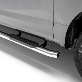 When you start and end your day turning the ignition of your truck, unreliable footing just is not an option. You need a step that can bear weight with ease, provide comfortable footing and look good doing it. ARIES 4" oval side bars are sleek, strong and custom-fitted to be a highly functional extension of your truck. ARIES 4" oval side bars are made with strong 4" elliptical tubing and are available in two different finish options to allow for full customization: polished stainless steel and black powder coat carbon steel. This set of side bars is constructed from 304 stainless steel, meaning high nickel content to be truly stainless. They easily resist rust and corrosion and feature a highly polished finish that is made to last. Something that sets the ARIES 4" oval side bar apart from all others is its blended end caps and OE-style bends. Rather than capping our side bars with a plastic cap, we offer a blended end cap for a smooth, finished appearance. We also equip the ends with a special 20-degree bend and original equipment styling to perfectly contour to your vehicle. ARIES 4" oval side bars are fitted with raised step pads to provide a wide stepping surface. The polypropylene construction will not crack over time, and because it has a textured grip, the surface is highly resistant to slips and skids, even when wet. Installation of ARIES 4" oval side bars is quick and easy with custom-fitted mounting brackets and no drilling necessary. These nerf bars fit select model years of the Chevrolet Silverado and GMC Sierra 1500, 2500 HD or 3500 HD crew cab (see application info to verify fitment).