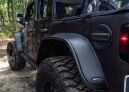 Be ready for anything: Equip your Jeep with Bushwacker Flat Style Fender Flares. They're the first and only flat style flares made to absorb impact using our proprietary Dura-Flex 2000 TPO the thickest, most flexible material available. Flat Style Fender Flares maximize your tire coverage and wheel articulation for intense off-road use. Yet they're carefully engineered to install with a minimum of extra tools and bodywork (see the installation guide for your specific vehicle for details). For example, our mounting brackets bolt straight onto your Jeep for added strength and simpler fitting. Our design integrates neatly with the factory rocker guards, and incorporates DOT-compliant LED side marker lights and fully molded wheel well protection. The flares are 100% UV protected, too, to stop chalking in its tracks. If you want the look and the real-world performance that best fits an American icon, nothing goes with your Jeep better than Bushwacker Flat Style Fender Flares.