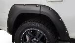 With their recessed stainless steel bolts and massive presence, Pocket Style Fender Flares are a Bushwacker original and an off-road icon. They give you the hard-core look of bolt-on flares, with no body-side sheet metal drilling required. Pocket Style Fender Flares are custom-designed for your vehicle to complement oversized tires and high-clearance lift kits. You can mount them right out of the box with their tough, OEM-style matte black finish they're UV protected so they won't chalk. You can also paint them to match or accent the body color for a factory-custom look. Pocket Style Fender Flares are made from our thick, warp-resistant Dura-Flex 2000 material and tailor-made for added durability and flexibility on the trail. When you need maximum tire coverage with minimum time and effort, it's in the pocket. Pocket Style Fender Flares from Bushwacker.