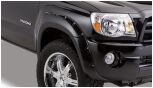 With their recessed stainless steel bolts and massive presence, Pocket Style Fender Flares are a Bushwacker original and an off-road icon. They give you the hard-core look of bolt-on flares, with no body-side sheet metal drilling required. Pocket Style Fender Flares are custom-designed for your vehicle to complement oversized tires and high-clearance lift kits. You can mount them right out of the box with their tough, OEM-style matte black finish they're UV protected so they won't chalk. You can also paint them to match or accent the body color for a factory-custom look. Pocket Style Fender Flares are made from our thick, warp-resistant Dura-Flex 2000 material and tailor-made for added durability and flexibility on the trail. When you need maximum tire coverage with minimum time and effort, it's in the pocket. Pocket Style Fender Flares from Bushwacker.