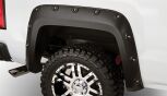 With their surface-mounted stainless steel bolts and massive presence, Boss Pocket Style Fender Flares are a Bushwacker exclusive. Despite their aggressive bolt-on styling, Boss Pocket Style Fender Flares install in minutes, with no body-side drilling. They're custom-designed for your truck to complement oversized tires and high-clearance lift kits. These flares are now available pre-finished to match the paint on your new truck or SUV, plus they have the edge trim and stainless steel hardware pre-installed for quick and easy installation and a perfect fit-no drilling required. Boss Pocket Style Fender Flares are made from our thick, warp-resistant Dura-Flex 2000 material, tailor-made for added durability and flexibility on the trail. When you need maximum tire coverage with minimum time and effort, it's in the pocket. Boss Pocket Style Fender Flares from Bushwacker.