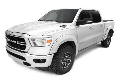 Bushwacker's rugged, iconic Pocket Style Fender Flares allow for more tire coverage and more clearance for trucks and SUVs while protecting the vehicle from dirt and debris. These flares are now available pre-finished to match the paint on your new Ram, plus they have the edge trim and stainless steel hardware pre-installed for quick and easy installation and a perfect fit . Made from sturdy Dura-Flex 2000 material, these flares are warp-resistant and tailor made for each application. Despite their bolted-on appearance, these flares install easily with minimal drilling for a secure fit. And since they're ready to install out of the box, there's no waiting on paint, and no hassle with installation.