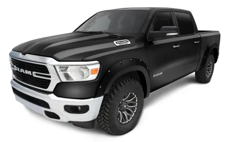 Bushwacker's rugged, iconic Pocket Style Fender Flares allow for more tire coverage and more clearance for trucks and SUVs while protecting the vehicle from dirt and debris. These flares are now available pre-finished to match the paint on your new Ram, plus they have the edge trim and stainless steel hardware pre-installed for quick and easy installation and a perfect fit . Made from sturdy Dura-Flex 2000 material, these flares are warp-resistant and tailor made for each application. Despite their bolted-on appearance, these flares install easily with minimal drilling for a secure fit. And since they're ready to install out of the box, there's no waiting on paint, and no hassle with installation.