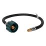 The Camco 20-Inch Pigtail Propane Hose Connector is designed to connect a propane cylinder to an RV or trailer propane regulator. It has an ACME nut x ¼-inch inverted male flare.