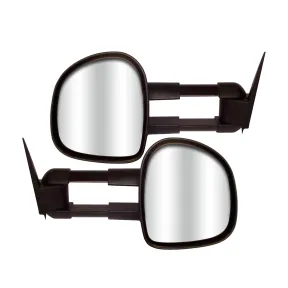 Its an all too common problem: you want to take the trailer out for a weekend, but you cant see around your tow load. Changing lanes and maneuvering through traffic has become a gamble putting you, your vehicle, and your load at risk. The solution is CIPAs Magna Extendable Replacement Mirrors. These revolutionary OEM-designed towing mirrors enable you to replace your entire factory mirror, without the factory cost. These mirrors have a full-sized 10"x10" mirror face; making them the largest in the industry. They feature more than twice the glass of the average mirror for a near-panoramic rearward view. The mirror head manually extends out up to 4.25" for a total extended length of approximately 22.25". This functionality provides a clear line of sight around any boat, trailer, or 5th wheel; providing unsurpassed visibility. There is no need to bother taking your towing mirrors off when not in use because they easily slide inboard for everyday driving. Besides being incredibly handy, your CIPA Extendable Replacement side view Mirror is custom made for a stock fit and a clean finish. Extendable Replacement Mirrors feature vibration-dampening bi-pillar construction for crisper, clearer reflected images, and are made of tough ABS plastic for increased impact resistance. These mirrors are available in manual-adjust, power adjust, and power adjust with heat, so you can retain the use of your factory mirror options while using the original OEM wiring. CIPA Extendable Replacement Mirrors even boast fold-away and break-away features for when you need to maneuver through tight spaces. The no-drill installation is a breeze; simply remove your original mirrors and mount your new mirrors using the existing mounting holes. Each kit contains 1 driver side and 1 passenger side mirror, 2 free 2.5" x 3.75" wedge HotSpot mirrors, and installation instructions. Add these mirrors to your truck today, and put it all behind you. Expand your Horizons.