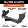 In the world of commercial towing, more is expected. A job cannot be completed if the equipment cannot handle the workload. That is why CURT developed the Commercial Duty class 5 trailer hitch. Constructed from steel and engineered for power, these class 5 hitches are designed to complement the towing power of full-size, commercial pickup trucks, including diesels and chassis cabs. They can easily handle a variety of oversize trailers, including toy and car haulers, livestock trailers, dumper trailers, large flatbed trailers, large boat trailers and more (NOTE: Never exceed the lowest weight capacity of any towing component). This particular class 5 hitch features a gross trailer weight capacity of 20,000 lbs. and a tongue weight capacity of 2,700 lbs. It is designed to be a custom trailer hitch for certain years of the Ford F250 Super Duty, F350 Super Duty and F450 Super Duty (to verify your vehicle compatibility, see application info). All CURT Commercial Duty class 5 hitches feature a 2-1/2" x 2-1/2" receiver tube opening to accept the strongest of ball mounts and towing accessories. They are perfect for mounting standard ball mounts, pintle mounts, tow hooks and weight distribution hitches as well as winch mounts and cargo carriers. CURT class 5 tow hitches are protected by a co-curing of liquid A-coat and carbide black powder coat finish. They also mount with grade-8 hardware, included with each hitch.