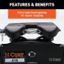 The CURT A16 5th wheel hitch excels in easy operation and stable, quiet 5th wheel towing. It does this with two key features: a single-throw handle and a patented head design. The single-throw handle only needs to be pulled once when coupling and uncoupling. It is designed to self-reset to the ready-to-couple position after uncoupling, allowing for fewer steps while hooking up your trailer. The patented head of the A16 features a cast yoke with poly-torsion inserts as well as interlocking jaws to create stability for your truck and trailer. These components allow the A16 to suppress shock and vibrations and reduce any additional noise coming from your trailer. In addition to its single-throw handle and cast yoke head, this 16K 5th wheel hitch comes with a three-position coupling indicator. The indicator is visible from the cab of your pickup truck and eliminates the need to get in and out of the truck cab to check the connection while coupling or uncoupling. The A16 also has an extra wide head to make coupling even easier, one-pin head removal to make it simple to move the hitch, and a GTW rating of 16,000 lbs. to tow a variety of 5th wheel trailers. Like the other CURT A-series hitches, the A16 is coated with a durable carbide powder coat finish. This particular A16 hitch comes with a set of CURT OEM puck system 5th wheel legs, designed to be mounted on a Ford long-bed pickup with the truck bed puck system. Using a set of quarter-turn anchors, the legs quickly and easily drop into the pucks, instantly mounting the A16 hitch and equipping the truck for 5th wheel towing. The anchors feature an adjustable design to perfectly lock the hitch into place and eliminate any chucking noises, and the legs are finished in a durable carbide black powder coat to be highly resistant to scratches, rust and UV damage. These legs are only intended to fit the Ford puck system and cannot be installed without it.