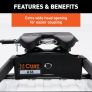 The CURT A16 is designed to provide a surprisingly quiet ride while maintain superior towing power. It has a gross trailer weight capacity of 16,000 lbs. and can handle a vertical load up to 4,000 lbs. It comes with a three-position coupling indicator visible from your pickup truck cab, an extra wide head for easier coupling and high-strength interlocking die-cast jaws for a secure hold on your 5th wheel trailer. This 16K 5th wheel hitch excels in quiet 5th wheel towing. It uses a fully articulating torsion head, a cast yoke with poly-torsion inserts and interlocking jaws to create stability for your trailer and tow vehicle. These components also allow the A16 to suppress shock and vibrations and reduce any additional noise coming from your trailer. Like the other CURT A-Series hitches, the A16 is coated with a durable carbide powder coat finish. It is tested in accordance with SAE J2638 for safety and includes a limited lifetime warranty to make this the best hitch ever to be mounted in the back of your pickup. This A16 5th wheel hitch comes with a set of industry-standard 5th wheel legs that are ready to mount into your truck bed with a pair 5th wheel rails and brackets (base rails and brackets sold separately).