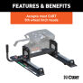A CURT 5th wheel trailer hitch is the ultimate combination of towing power and smooth driving, but a CURT 5th wheel mounted on a 5th wheel roller turns this gentle giant into the ultimate in mobility too. If you have a short-bed truck, it can be difficult towing a large RV trailer, especially one with an extended front overhang. When you are towing a 5th wheel with a 6-foot truck bed, give yourself a little breathing room with a CURT 5th wheel roller. Our 5th wheel rollers mount easily onto a set of 5th wheel rails or a gooseneck adapter already installed in the bed of your pickup truck. CURT 5th wheel rollers feature solid construction and offer a sturdy mounting place for your 5th wheel hitch, ensuring that none of its towing strength is lost. CURT 5th wheel rollers are also true rolling units, meaning they actually roll on wheels that bear the weight of the trailer rather than simply moving on hollow rods as seen in competitive models. With a thick operating handle, the roller smoothly rolls the 5th wheel head forward and back, locking securely into each position as desired. CURT rollers also provide up to 12" of displacement as well, unlike the more common 10", to give you a wide range of motion and plenty of space to get your RV or other 5th wheel trailer around any turn. This 16K 5th wheel roller comes with a durable carbide powder coat to ensure the best possibly protection against scratching, chipping, rusting and UV damage. It has a towing capacity of 16,000 lbs. and is compatible with select CURT 5th wheel hitches and some competitive 5th wheel hitches.