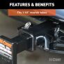 Quickly secures ball mounts and other receiver tube inserts with no clip needed