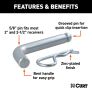 When you mount a ball mount on your trailer hitch, you expect it to stay put. Whatever type of load you are hauling, having towing equipment that can work as hard as you do is a must. For all types of heavy-duty towing, CURT 5/8" hitch pins and clips pack a little extra punch. We make our 5/8" hitch pins out of solid steel and coat them in one of four finish options. All of these finishes offer excellent resistance to rust and corrosion for long-lasting, smooth operation. CURT hitch pins are also constructed with a 105-degree bend, creating a useful handle for a better grip and allowing the pin to stay securely engaged in the trailer hitch and ball mount. This particular 5/8" hitch pin features a zinc finish and comes with a groove that allows the clip to be inserted at any angle. CURT 5/8" hitch pins and clips are ready to work. They provide reliable installation for any ball mount or hitch-mounted accessory with a 2" or 2-1/2" shank, making them the perfect fit for class 3, 4 and 5 trailer hitches.