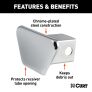 If you own a vehicle with a trailer hitch, you know how quickly the receiver tube can get built up with dirt, debris and road grime. It does not take long before inserting a ball mount or hitch-mounted accessory into your trailer hitch becomes more difficult than it should ever have to be. With enough time and moisture exposure, the inside of a receiver tube can become seized up with rust, making it very difficult to use. Keep your trailer hitch's receiver tube clean and protected when not towing with one of CURT's attractive and durable tube covers. This CURT 2" x 2" receiver tube cover is constructed from quality steel and features a bright chrome finish. It is designed to mount onto a receiver tube opening using a hitch pin and clip. At CURT, we want to give you a complete towing solution and that includes providing you with the products necessary to maintain your towing equipment. Defend your trailer hitch from the harsh elements with a CURT trailer hitch cover.