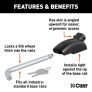 The CURT 5th wheel hitch lock #23256 provides the best possible security for your 5th wheel hitch because it is uniquely design for 5th wheel hitches and only 5th wheel hitches. It is not like standard hitch locks or coupler locks. It has two key features that make it particular unique and highly specialized for 5th wheel security: an extra-long pin and a zero-clearance body shape. The hitch pin used by the CURT 5th wheel hitch lock features a 1/2" diameter to fit all industry-standard 5th wheel base rails. However, unlike common hitch locks, this 1/2" pin has an extended length, allowing it to easily pass through a 5th wheel rail and leg anchor, locking the hitch into the truck bed. The CURT 5th wheel hitch lock is also shaped to provide enough space to clear the truck bed floor with ease. Unlike a hitch lock, the CURT 5th wheel lock will not be obstructed by the lock head. The 5th wheel lock is engineered to slide into place, next to the 5th wheel base rail, without any obstructions. The CURT 5th wheel hitch lock #23256 is highly weather-resistant and easy to operate. It is constructed from rust-free aluminum to easily outlast the elements, and it is finished in a durable black powder coat for maximum corrosion protection. It also features a weather-resistant dust cap to protect the key hole. The lock operates with a 1/8-turn activation for ease of use, and it comes with two keys to allow multiple people to operate the lock as need or to provide a backup key if one is lost.