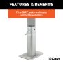 In our goal of being your best source for all things towing, the CURT line of trailer jacks is designed with care and manufactured with pride. CURT jacks are made with quality to promote the life and function of your trailer, and they come in several different styles to accommodate your needs, whether you are a frequenter of the boat landing, the campground, the racetrack or the field. Add stability and support to your trailer jack and trailer with a CURT jack foot. This hardy steel jack attachment features a simple safety pin mounting system and can be used on a number of CURT jacks and many competitive models. It measures 8-1/2" tall, has a weight capacity of 2,000 lbs. and is designed for 2" diameter tubes. It does not matter what kind of trailer you tow -- a boat trailer, utility trailer, livestock hauler or recreational vehicle trailer -- if you have a receiver-style trailer, you will want a jack that complements its function. For a trailer jack that will not steer you wrong, CURT has the answer.