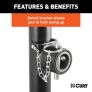 - Swivel bracket allows jack to fully swing up and out of the way for travel