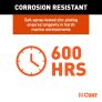 - 600-hour salt-spray-tested zinc plating for lasting corrosion resistance