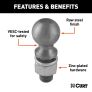 The CURT 2-5/16" trailer ball does not mess around. Simply put, it is a solid piece of towing equipment that makes all others look like they're just spinning their wheels. CURT 2-5/16" trailer balls are made with expert engineering to be packed with strength and durable enough to withstand the harsh wear of heavy-duty towing. Anything your class 5 trailer hitch and class 5 ball mount can handle, CURT has a 2-5/16" trailer ball to match. These tow balls are perfect for towing all types of heavy receiver-style trailers, including dump trailers, toy haulers, farm trailers, chopper boxes, dual-axle utility trailers, deluxe RVs, small yachts and more (NOTE: Never exceed the lowest weight capacity of any towing component; i.e. the vehicle, hitch, trailer, etc).This 2-5/16" trailer ball features a ball capacity of 30,000 lbs. It features a 1-1/4" shank diameter, a 2-5/8" shank length, 0" of rise and a raw steel finish to protect against the elements. To give you the power you need to tow with confidence, CURT 2-5/16" trailer hitch balls are thoroughly tested for safety and meet U.S. VESC specifications.