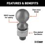 The CURT 2-5/16" trailer ball does not mess around. Simply put, it is a solid piece of towing equipment that makes all others look like they're just spinning their wheels. CURT 2-5/16" trailer balls are made with expert engineering to be packed with strength and durable enough to withstand the harsh wear of heavy-duty towing. Anything your class 5 trailer hitch and class 5 ball mount can handle, CURT has a 2-5/16" trailer ball to match. These tow balls are perfect for towing all types of heavy receiver-style trailers, including dump trailers, toy haulers, farm trailers, chopper boxes, dual-axle utility trailers, deluxe RVs, small yachts and more (NOTE: Never exceed the lowest weight capacity of any towing component; i.e. the vehicle, hitch, trailer, etc).This 2-5/16" trailer ball features a ball capacity of 30,000 lbs. It features a 2" shank diameter, a 3-1/2" shank length, 0" of rise and a raw steel finish to protect against the elements. To give you the power you need to tow with confidence, CURT 2-5/16" trailer hitch balls are thoroughly tested for safety and meet U.S. VESC specifications.