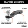 - Factory-torqued CURT trailer ball accepts a 2-5/16" coupler