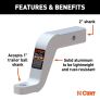 This CURT class 3 aluminum trailer hitch ball mount features a 2-inch x 2-inch shank and an 8K capacity for towing larger trailers, including utility trailers, boat trailers, campers and more. With class 3 trailer hitches being the most common type of trailer hitch for pickup trucks and SUVs, the class 3 ball mount, by association, is an excellent complement to this trailer hitch and these larger vehicles (NOTE: Never exceed the lowest weight capacity of any towing component; i.e. the vehicle, hitch, trailer, etc). This particular aluminum ball mount can be used in the drop position to provide a drop of 6 inches, a gross trailer weight capacity of 8,000 pounds and a tongue weight capacity of 800 pounds. It can also be flipped to provide a rise of 5 inches. It features a length of 8-1/2 inches hole-to-hole, and it has a 1-inch hole to accept a tow ball. CURT aluminum hitch ball mounts are constructed from solid aluminum. They are strong but lightweight compared to steel alternatives. Aluminum is also naturally resistant to rust and corrosion, promoting long-lasting dependability for your towing system. NOTE: Trailer ball torque should not exceed 250 lb-ft. (sold separately).