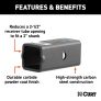 CURT hitch adapters can be used for many different purposes when hitching up a trailer. Whether a ball mount shank is too small or too large to fit into a receiver tube, a CURT adapter can make up the difference. Our adapters are built with exceptional strength and designed to be precisely fitted for their application. We carry trailer hitch adapters to accommodate both receiver tube openings and shanks of 1-1/4", 2" and 2-1/2" dimensions. CURT adapters also come in various lengths to allow more clearance for a cargo carrier, bike rake or spare tire. This CURT reducer sleeve adapter converts a 2-1/2" x 2-1/2" receiver tube opening to a 2" x 2" opening. It installs easily and is compatible with virtually any 2-1/2" x 2-1/2" hitch. Its gross trailer weight capacity and tongue weight capacity are limited to the hitch. All CURT adapters are constructed using our quality manufacturing processes. We CNC-form each unit, weld it together using advanced robotic systems and then mechanically descale every surface to make each adapter smooth to accept a finishing coat. To finish off this adapter, we give it a durable black carbide powder coat finish to ensure it has excellent rust, chip and UV resistance.