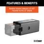 The CURT reducer sleeve set includes two reducer sleeves that adapt a 3" receiver tube opening to fit a 2-1/2" or 2" shank. The adapter sleeves install easily and are compatible with virtually any 3" hitch. The smaller sleeve can also be used in a 2-1/2" receiver tube opening, adapting it for a 2" shank. The gross trailer weight capacity and tongue weight capacity of this set are limited to the rating of the hitch. To finish off this reducer sleeve set, it comes with a highly durable carbide black powder coat finish, ensuring excellent rust, chip and UV resistance.