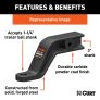 The CURT Industrial Duty ball mount features a 3" x 3" shank to fit heavy-duty 3" trailer hitches. The solid, forged steel construction and I-beam shape supply the necessary strength to complement these larger trailer hitches, and the ball mount has a highly durable carbide powder coat finish for long-lasting rust resistance. To ensure maximum towing power, this ball mount is rated for 21,000 lbs. GTW and 2,800 lbs. TW. The 21K GTW rating is fully tested to at our Detroit engineering facility. This ball mount also offers a rise of 6" and drop of 8" to accommodate larger, lifted pickup trucks, allowing for level towing of the trailer. It also has a 1-1/4" trailer ball hole to accept a heavy-duty trailer ball.