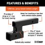 CURT hitch adapters and extenders are easy to use and help provide level towing for your trailer. This receiver hitch adapter is designed to fit a 2-inch x 2-inch receiver tube opening. It not only extends the receiver but also provides 4 inches of drop or 4 inches of rise. It is great for adjusting the height of a ball mount, bike rack or other hitch accessories. It has a max weight capacity of 7,500 lbs. This raised hitch adapter extension is also ideal for dinghy towing, allowing you to level your tow bar with the vehicle base plates. CURT hitch adapters are crafted to be durable and dependable. This drop down hitch adapter features a strong steel construction, precise welding and a durable black powder coat finish for lasting resistance against rust, chipping and UV damage.
