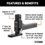 If you own multiple trailers or frequently tow a variety of loads, you know how much time and money are spent tailoring your towing system to each and every individual trailer. There is nothing more inconvenient than switching back and forth between a few different ball mounts and trying to remember which mount fits with which trailer. A CURT adjustable ball mount is your multipurpose towing solution. Its key feature is its adjustable design that takes the form of an adjustable channel-style mount or adjustable shank. Both use a series of holes to allow the ball mount to be vertically adjusted and allow for significant flexibility in drop and rise. With a variable ball height, CURT adjustable ball mounts can easily accommodate different coupler heights and multiple trailers. This particular adjustable ball mount is considered a class 3 ball mount and comes with an adjustable shank. It features a gross trailer weight capacity of 5,000 lbs. and a tongue weight rating of 500 lbs. Unlike other adjustable ball mounts that have fixed trailer balls, this one comes with a trailer ball platform with a 1" ball hole, allowing it to readily accept the trailer ball of your choice. With its 1-1/2" adjustment increments, this class 3 adjustable ball mount has a maximum drop of 7-1/2" and a maximum rise of 6-1/4". It also features a total length of 12-1/2". All CURT adjustable ball mounts come with a 2" x 2" shank and are made with sturdy steel construction. For long-lasting rust, scratch and UV resistance, they also come with our gloss black powder coat finish to give you peace of mind for the road ahead.
