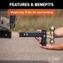 - Weighs only 15 lbs. for easy handling, compared to other adjustable hitches
