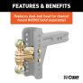 This replacement dual ball is designed to fit the CURT adjustable channel mount #45902 or #45927. It has two ball sizes to fit 2-inch or 2-5/16-inch trailer couplers. NOTE: This package includes the dual ball only. Shank sold separately. This product is protected under U.S. Patent Numbers: 11,628,698 and 11,660,916.