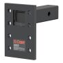 In agriculture, construction and even military applications, pintle hitches are the trusted product of specialized towing. They are notorious for their high weight capacity and simple design. The basic pintle hitch is essentially a hook and loop, with the hook attached to the vehicle and the loop mounted on the trailer. Because of their simple design, pintle hitches are able to have thicker metal construction and more secure coupling. CURT has a wide variety of pintle hitches and pintle-style products to give you a complete solution for your heavy-duty towing needs. This adjustable pintle mount is designed to accept a bolt-on pintle hook or combination ball and pintle. It features a series of mounting holes to provide three different mounting heights for the hook and can be mounted in any 2" x 2" receiver tube opening. This pintle mount offers a gross trailer weight capacity up to 10,000 lbs. and features a total plate height of 7", providing up to 6-1/2" of drop (NOTE: Not for use in rise position; never exceed the lowest weight capacity of any towing component; i.e. the vehicle, hitch, trailer, etc). The heavyweight towing done with pintle hitches implies a certain amount of wear and tear on your towing equipment, and to prepare for this, CURT uses a quality finish on all our pintle mounts, lunette eyes and combination pintle hitches. This pintle mount is coated in a tough black carbide powder coat finish to provide the perfect amount of rust and scratch resistance needed to face the heavy-duty towing you do every day.