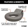 In agriculture, construction and even military applications, pintle hitches are the trusted product of specialized towing. They are notorious for their high weight capacity and simple design. The basic pintle hitch is essentially a hook and loop, with the hook attached to the vehicle and the loop mounted on the trailer. Because of their simple design, pintle hitches are able to have thicker metal construction and more secure coupling. CURT has a wide variety of pintle hitches and pintle-style products to give you a complete solution for your heavy-duty towing needs. This lunette eye is designed to mount on a CURT lunette channel #48610 or #48640, allowing for easy height adjustment and trailer levelling. It features a forged steel construction and boasts a gross trailer weight capacity of 24,000 lbs. (NOTE: Never exceed the lowest weight capacity of any towing component; i.e. the vehicle, hitch, trailer, etc). With a 3" inside diameter, this lunette ring fits a variety of CURT pintle hooks and ball and pintle combinations.