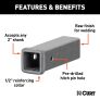For the do-it-yourselfer, CURT offers an entire line of towing fabrication components to supply you with the quality building blocks you need. These raw steel components are made from solid steel for maximum strength, and they come ready to be welded together in whatever form you need to get the job done. CURT fabrication steel receiver tubing can be used to extend the reach of your receiver or to create a piece of custom towing equipment. Each unit is equipped with a 1/2" reinforcing collar for extra strength and has a raw finish to be ready for welding. This receiver tube has a 2" x 2" opening and measures 9" in length.