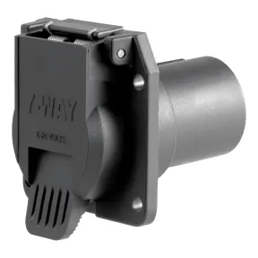 Like trailer hitches and ball mounts, electrical connectors range all over the board in shape, size and capability, but no matter what your trailer's electrical functions are, you need a solid connection to keep the power flowing and ensure safety on the road. CURT electrical connectors are designed and manufactured to give you a reliable connection every time you plug in your trailer. This 7-way RV blade connector is designed to plug into a USCAR socket and supply power for tail lights, turn signals, electric trailer brakes, a 12-volt battery, reverse lights and brake lights, as well as a ground connection. It is intended to be a replacement trailer connector, plugging into a standard USCAR socket (see application info to verify fitment with your vehicle). It features rust-free black plastic construction and comes with a spring-loaded cover to keep out dust and water. This 7-way RV blade connector is a female-end socket, specifically designed for the vehicle side of the connection.